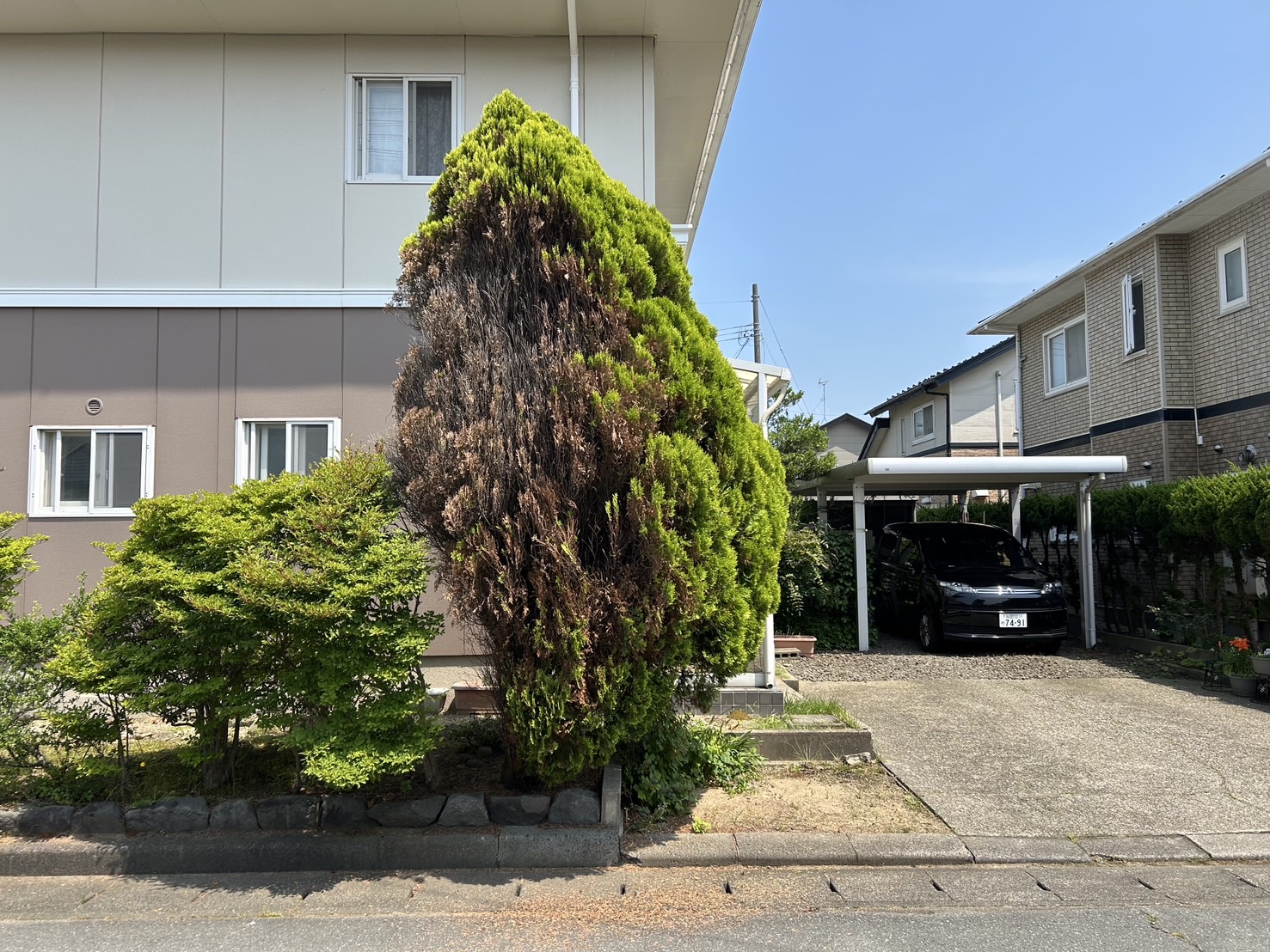 羽村市のお客様から、「敷地内にある3〜4メートルくらいの木を根元から切ってほしい」とご依頼いただきました。